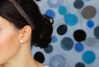 Los ojos van muy suaves, con un rosa dorado como base de todo y toque luminoso en el lagrimal, un color topo en el pliegue del párpado para dar profundidad, y un berenjena para definir la mirada a ras de las pestañas inferior y superiores. El toque luminoso lo damos con el iluminador en el hueso de la caja. La máscara de pestaña es muy importante, dado que este es un día de gran emoción, es mejor si utilizamos máscara waterproof aunque sólo sea en las pestañas inferiores.
