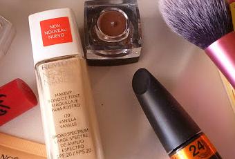 Ojos En los ojos utilicé una ligera capa delColor Tattoo de MaybellineenBad to the Bronce, realicé la aplicación con mis dedos, pues encuentro que las sombras en crema se difuminan mejor con las manos. Me sentía un poco aventurera, así que encima de mi usual delineador en crema marrón deE.l.f. añadí un poco de la sombraAlice Copperde laRockstar Palette de The Balm, un tono entre granate y morado. Para asegurarme que la sombra durara sobre el delineador rocié un poco delMake up Mist and SetdeE.l.f.sobre una brocha angular deEcotools y luego utilicé la brochita húmeda para aplicar la sombra. Ricé mis pestañas con mi nuevo rizador favorito deJaponesquey las cubrí con dos capas deCover Girl Lash Blash 24HR. Me encanta ésta máscara porque separa y alarga muchísimo, dando un aspecto saludable y natural a las pestañas, naturalmente fabulosas claro ;)