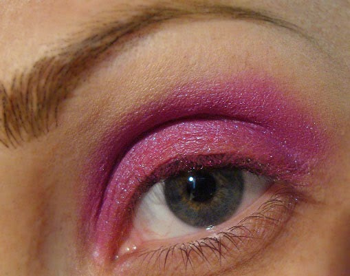 Maquillaje ideal para estas fechas. La purpurina es mágica, sexy, glamourosa, sofisticada y atrevida. !Ideal para brillar y potenciar tu belleza!Aplico en todo el ojo, jumbo blanco o base blanca y difumino con el dedo. Con el pigmento rojo de Mac "Basic Red" Número A 73, relleno todo el párpado móvil. Eso hará que le de intensidad al color que aplique después.Encima del rojo aplico pigmento Bright Fucsia deMacCon un poco de sombra negra ( yo utilicé la cryptonite de Nyx), aplico un poco en el extremo del ojo y difumino sin salirme del sitio.Trazo una linea con eyeliner en crema negro. En este caso a sido eyeliner dúo azul y negro de Elisabeth Arden "Color intrigue".Aplico un poco de Gloss pegajoso en el dorso de la mano y muy poco a poco, empiezo a mojar la purpurina y lo voy aplicando despacio en el ojo. Una vez aplicado, pasaremos el eyeliner nuevamente.Relleno con lápiz negro el interior del ojo. Rizo las pestañas y aplico rimel arriba y abajo.Podéis jugar también con pestañas postizas de fantasía. El resultado es mucho más original.Maquillaje realizado por Tammystyle