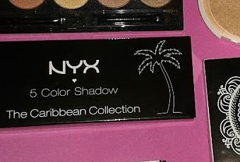Paleta de sombras: de la colección "Caribbean Collection", el nombre de la paleta:I dream of Aruba, ¿a quién no le gusta estos tonos tierra?, son todos muy brillantes y bonitos, aunque para ser de la marca Nyx, me ha decepcionado un poco que me han parecido unas sombras un poco polvoriendas y esto dificulta su pigmentación( he de decir que tengo varias paletas de esta marca y nunca me ha ocurrido esto), bueno, usando una prebase podemos solucionar un poco este problema... el precio de la paleta es de 7.99 euros.