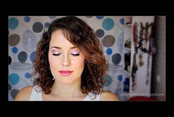 El rostro va contorneado leventemente, como iluminadores he utilizado tonos rosas escarchados y las mejillas con una preciosa mezcla de dos coloretes, uno fucsia y otro palo.