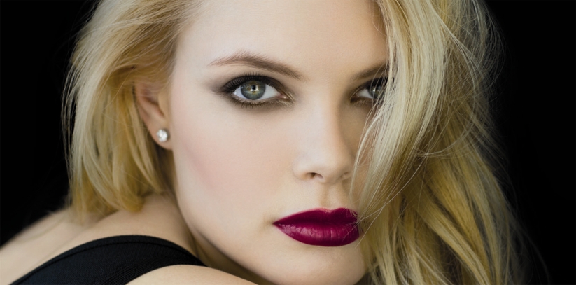 Como veran, un rostro luminoso, unos ojos ahumados en los que se mezclan tonos lilas, marrones, dorados y rosas pero el esfumado de ellos es tenue , el rubor es pastel, las bases son livianas e iluminan el rostro y armonizan con el estilo romantico que se pretende lograr.