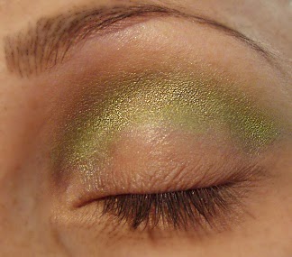 PASO A PASO Trazo una línea con sombra verde limón en el pliegue del ojo. Luego difumino.