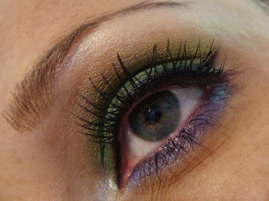 Y como ya es primavera, os traigo un maquillaje floral. He utilizado un tono morado suave y un verde mezclado con verde limón. Todo esto de la famosa paleta de 120 colores.