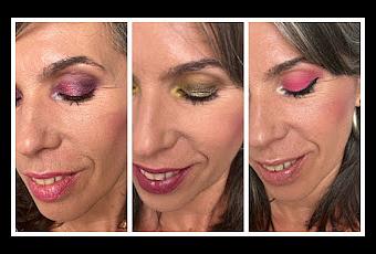 Otra combinación super alegre y que no se ve a menudo por la calle. En el párpado móvil usé varios tonos de rosa intenso, pero con acabado mate. El brillo lo dejé para el lagrimal, donde usé un tono perla, el iluminador - en pómulos y arco de cupido - y los labios, donde solo llevo un toque de gloss brillante.Y a ras de pestañas inferiores viene el toque turquesa que contrasta y da un aire alegre, divertido, bajo mi punto de vista.