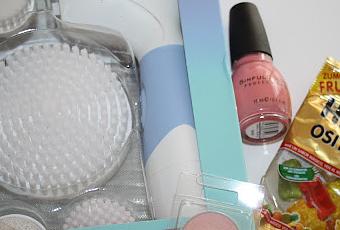 Cuando el paquete llegó, al día siguiente de hacer mi pedido, y abrirlo ¡sorpresa! 3 muestras de sombras de ojos y un paquete de chuches, del que por cierto di buena cuenta.
