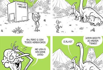 Hace poco hablamos por aquí de Alvaro Terán y de las tiras que periódicamente va dejando en su Tumblr "Le puede pasar a usted". Hoy traemos más viñetas dinosaurianas publicadas recientemente por Terán en las que vemos un viaje en el tiempo con resultados imprevisibles.