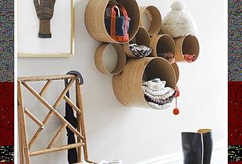 Ya he encontrado una entrada que puede quedar bien en cualquier casa... no se necesita mucho mobiliario -ideal pra espacios pequeños- y tiene todo lo que se le puede pedir a una entrada: una silla para calzarte y cuyo respaldo sirve de paragüero, unas estanterías originales para guardar llaves o papeles y un cuadro para alegrar la vista (también se podría haber puesto una pizarra para no olvidar recados).