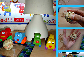 Yo antes las guardaba en una bolsita, pero cuando quería encontrarla no había forma. Esta idea me parece muy buena ya que puedes tener las gomas a la vista, decorando cualquier estantería. Ahora los niños, cuando se encuentran una goma, me la dan y la "atamos" a la pelota... no sé cuántas habrá ya.