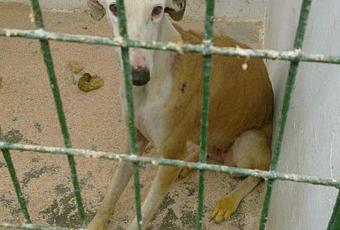 MARA, GALGA HERIDA EN EL CUELLO LE HAN ARRANCADO EL MICROCHIP! ESTA MAÑANA (28 d Noviembre) HAN DEJADO EN LA PERRERA ESTA GALGA CON HERIDA EN EL CUELLO, TRAS HABERLE QUITADO EL MICROCHIP. TIENE LAS PATAS PINTADAS DE AMARILLO Y CUATRO O CINCO HERIDAS POR SU CUERPO, SE LO HAN ESTADO PASANDO EN GRANDE CON ELLA, ES UNA BENDITA, ES BUENÍSIMAAAAA!!!!