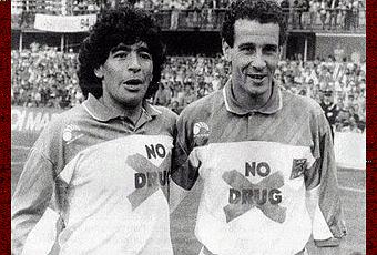 La fotografía que ilustra el post, de un humorismo siniestro, corresponde a los años europeos de Maradona. En ella aparece en compañía de Julio Alberto, otro jugador del FC Barcelona que en aquellos años era asimismo adicto a la cocaína, participando en un partido de fútbol "All Stars" contra las drogas.