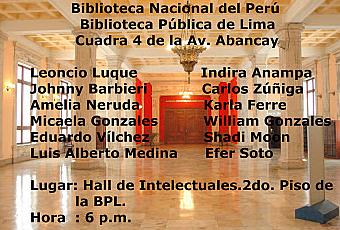 Lugar: Hall de Intelectuales 2do piso de la BibliotecaPública de Lima