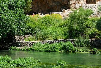 El manantial de Banias, preciosa reserva natural y yacimiento arqueológico de la antigua ciudad de Cesarea de Filipo, ubicado al pie del monte Hermón en los Altos del Golán.