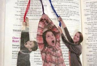 Seguro que tienes muchas fotos de los niños, a cuál más graciosa. Puedes usarlas para hacer estos marcadores, o pedirle a los niños que posen para las fotografías y hacer marcadores para libros como los que observas en las imágenes.