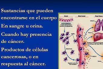 Los marcadores tumorales son sustancias que se encuentran en el cuerpo que pueden detectarse en una persona con cáncer. Lo ideal es que sirviesen para hacer un diagnóstico precoz pero habitualmente no es así. Actualmente pueden ser útiles para determinar si un determinado cáncer es probable, para valorar la efectividad de un determinado tratamiento, o para vigilar posibles recurrencias.Los más habituales son los siguientes:- Antígeno prostático específico (PSA): Es el que ha mostrado mayor utilidad en el diagnóstico temprano, concretamente del cáncer de próstata.- Alfafetoproteína: en cáncer de hígado.- CA 125: cáncer de ovario (concretamente del epitelial, el más frecuente).- CEA: para cánceres de colon y recto.- CA 19-9: originalmente creado para detectar cáncer colorrectal, hoy se usa más frecuentemente en pacientes con cáncer de páncreas.- CA 15-3: cáncer de mama.- Calcitonina: carcinoma medular de tiroides.- Gonadotrofina coriónica humana (HCG): en ciertos tipos de cáncer testicular y ovárico (tumores de las células germinales), así como en neoplasia trofoblástica del embarazo, principalmente coriocarcinoma.Para ampliar el tema dejo el trabajo de la American Cancer Society de 2011.
