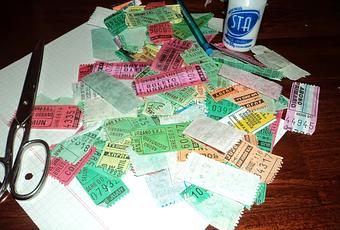 ¿Cómo se hace?Es de lo más sencillo del mundo. Primero sobre la hoja (o cartulina) van colocando los boletos en algún órden que les guste. Sin pegar nada, solo para jugar con el diseño primero.