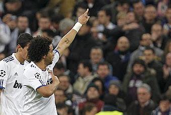 Una de las peticiones de José Mourinho cuando estampó su firma en el contrato con el Madrid fue fichar a Kolarov, al que consideraba el lateral izquierdo ideal. El fichaje no cuajó (el Manchester City se cruzó en el camino) y al técnico portugués no le quedó más remedio que conformarse con Marcelo Vieria Silva Júnior (Río de Janeiro, Brasil, 1988). Meses después Mourinho está encantado con el brasileño, puro torbellino en ataque, un jugador más hecho y maduro conforme pasan las temporadas y que desde que llegó en el mercado de invierno del curso 2006-2007 nunca había pasado de cuartos de final en la Champions. Fue el propio Marcelo quien puso remedio a una nefasta racha que duraba seis años para el Madrid, anclado en los octavos del torneo que ha ganado más veces que nadie. El lateral combinó con Cristiano Ronaldo, titular más por la repercusión de la cita que por su estado de forma, salvó a Cris y dejó en el suelo al otro central del Olympique de Lyon, Lovren, antes de marcar el primero. Ya en la segunda parte Marcelo rebañó una asistencia involuntaria de Révellière para asistir a Benzema para que éste anotase el segundo ante su ex equipo. El francés parece otro desde la llegada de Adebayor y acumula siete goles en los últimos cuatro partidos y seis en siete encuentros de Champions, competición en la que Marcelo no había marcado nunca. En otra contra Di María hizo el último (3-0) ante un equipo francés al que el Madrid jamás había conseguido superar.