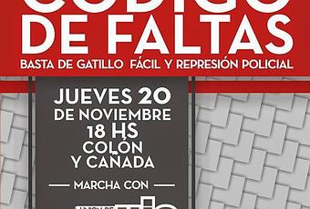Movilicémonos masivamente el 20/11 en la “Marcha de la Gorra”. Y el 04/12 marchemos a la Legislatura a exigir la anulación del Código de Faltas y su versión “reformista” de “Código de Convivencia”.