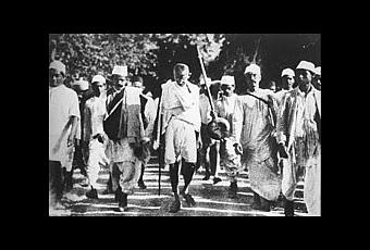 A lo largo de la marcha, Gandhi y sus seguidores entonaron a modo de himno el mantra Raghupati.