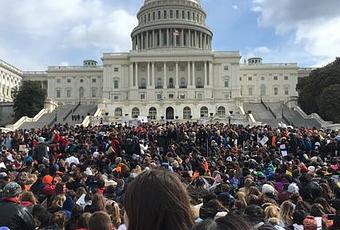 Los estudiantes de Marjory Stoneman Douglas High School se unieron a otros de todo el país el viernes afuera del Capitolio de EE. UU. Para hacer un llamado a la acción de los legisladores antes de las manifestaciones del sábado por “March for Our Lives”. (23 de marzo) AP
