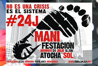 Las marchas de “indignados”,compuestas por siete columnas iniciadas en Galicia, Bilbao, Barcelona, Valencia, Murcia, Málaga y Extremadura, junto con la desarrollada en las Islas Canarias, llegan a Madrid a lo largo del día 23 y 24 en siete columnas y son recibidas en los barrios. Los que vienen del Norte, en el Parque del Norte (detrás del Hospital La Paz); los que vienen del Noreste, en el Parque de San Blas; los que llegan del Este, en Vallecas; quienes vienen del Sur, en Parquesur y quienes proceden del Noroeste, en le Parque del Oeste. Allí les proponen lugares para dormir. La iniciativa parte de la “Acampada Sol”, aunque en algunos lugares se adhieren otros colectivos, como “Democracia Real Ya”. El Movimiento 15-M, extendido por los diversos sectores de la sociedad, pretende con esta experiencia conocer la problemática de los pueblos y del mundo rural, un sector un tanto olvidado. Los caminantes de la “Marcha Popular Indignada” sólo llevan cosas personales propias de unas andadas que duran una media de un mes. Cada cual es libre de ir en el medio de transporte que desea. Los coches sirven para transportar el material más pesado. Las aportaciones económicas son voluntarias. En las marchas no hay nada obligatorio, aunque se solicita un comportamiento personal acorde con el movimiento.