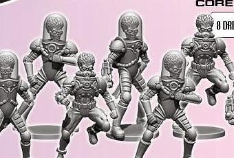 Me ha encantado,la verdad,esta noticia.No se muy bien porque,pero me ha puesto de buen humor.Un puntazo muy divertido de parte de la gente de Mantic.Con el Kickstarter de Mars Attack,les ha dado el pronto de sacar cosas de Mars Attack para otros juegos de Mantic.Y una de las cosas que han sacado ha sido...El equipo de marcianos de Dreadball!!Son,por lo que se ve en las imágenes y lo que yo creo,8 figuras que incluyen dos Guards,tres Jacks y tres Strikers.Esto es el equipo básico y curiosamente tiene el mismo tipo de jugadores y en igual proporción que el de humanos.Supongo que tendrán atributos diferentes,supongo.