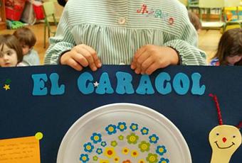 Marco ha hecho en casa un mural con un caracol precioso construido con un plato de plástico. Además nos ha enseñado muchos datos interesantes sobre estos animales,