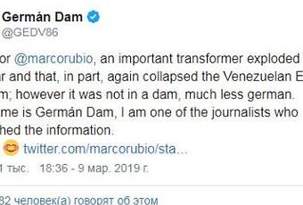 El reportero acudió en ayuda del político. "Senador Marco Rubio, un importante transformador explotó en Bolívar [...]; sin embargo no sucedió en un dique ni mucho menos en uno alemán. Me llamo Germán Dam, soy uno de los periodistas que publicó la información", tuiteó.