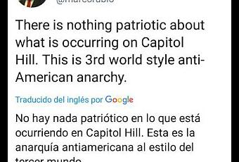 Pero, mientras sucedían los hechos de violencia en Estados Unidos con la invasión de los seguidores de Trump al Congreso gringo, Rubio tuiteó: