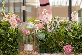 Una sala repleta de flores espectaculares, inundada de luz y con vestidos divinos de Isabel Nuñez, si no los conocéis por favor, echadlos un vistazo, son increíbles!