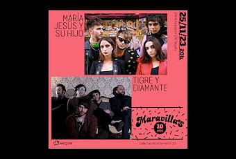 Se acerca un gran concierto a la vista, será el momento de ver en Maravillas Club a María Jesús y su hijo y a Tigre y Diamante.Son dos buenas formaciones, dos formaciones que tienen una propuesta muy intensa en formato eléctrico.María Jesús y su hijo nos esperan en Madrid en un nuevo show donde mostrar todas las aptitudes que tienen, nos encontramos con una banda joven que lleva demostrando su fuerza a lo largo de su existencia. Tigre y diamante nos presentarán su nuevo disco en Madrid, show en el que tendrá esa fuerza de las primeras veces.