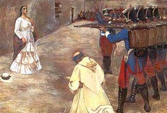 A María Andrea Parado de Bellido, casi todos los historiadores la dan por nacida en Huamanga (Ayacucho), el sacerdote Carlos Cárdenas afirma haber descubierto su partida de bautizo en la parroquia de Cangallo, donde habría nacido en 1761. Su esposo, Mariano Bellido, y uno de sus hijos trabajaban en la sección de correos del distrito de Parás, de la provincia de Cangallo, y formaban parte de las montoneras del coronel rebelde Cayetano Quirós. María Parado colabora con las fuerzas patriotas en la medida de sus posibilidades, ya que a la sazón contaba con más de sesenta años, además de no saber escribir. Sin embargo, enterada de que el general realista José Carratalá pensaba enviar unas fuerzas a Parás, le avisa a su marido en una carta que hace escribir por su compadre Matías Madrid. La carta es descubierta y las pesquisas conducen rápidamente hacia María, quien es hecha prisionera el 30 de marzo de 1822 por Carratalá, quien también reprimiría ferozmente a los rebeldes Cayetano Quirós y Basilio Auqui. Sometida a intensos interrogatorios para que revelara los nombres de los comprometidos en el movimiento, María Parado de Bellido se negó a dar ningún nombre y se dice que habría respondido a sus captores: “No estoy aquí para informarles a ustedes sino para sacrificarme por la causa de la libertad”. Es fusilada en la pampa del Arco el 1ro de mayo y su cadáver trasladado al templo de la Merced donde se le dio sepultura.