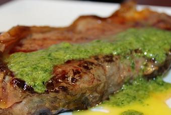 Ahora emplatamos el entrecot con un poquito de salsa de perejil que dará un sabor que disfrutaremos.