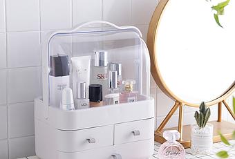 La mía fue buscar formas de almacenaje que me dieran la sensación de un baño ordenado con mi maquillaje bien colocado, a mano y que además dejara el baño mono.