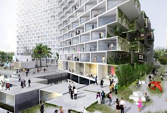 Situado en un espacio industrial en el parque Riverwalk de Fort Lauderdale, Marina Lofts cose junto el brazo final del espacio público actualmente fragmentado a lo largo del Río Nuevo. Diseño de BIG enmarca el espacio con un paseo público generoso delimitada hacia el sur por una serie de 3 fases de torres residenciales, creando la vida pública a lo largo de la orilla del río, mientras que el mantenimiento de las actividades marinas existentes de Fort Lauderdale. Las dos torres de viviendas iniciales se tratan como un edificio continuo “romper” en el centro para formar una abertura que permite la actividad peatonal máxima fluya entre los edificios y se extiende la vida de la ciudad a la orilla del mar.