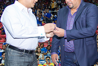 Antes del salto entre dos, se realizó el acto de entrega de anillos de campeón a los basqueteros navales por su décimo campeonato, obtenido en 2014 luego de vencer en el máximo de compromisos a Trotamundos de Carabobo. La ceremonia contó la presencia del presidente de la Junta Directiva de la LPB, Bob Abreu, junto con el también presidente de Marinos, Gustavo Mendiri.
