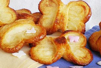 Espolvorear con azúcar el papel en que viene la masa de hojaldre (rectangular, no redonda), colocar esta encima y repartir de nuevo azúcar sobre la masa. Presionar bien para que quede el azúcar adherido a la masa.