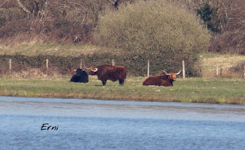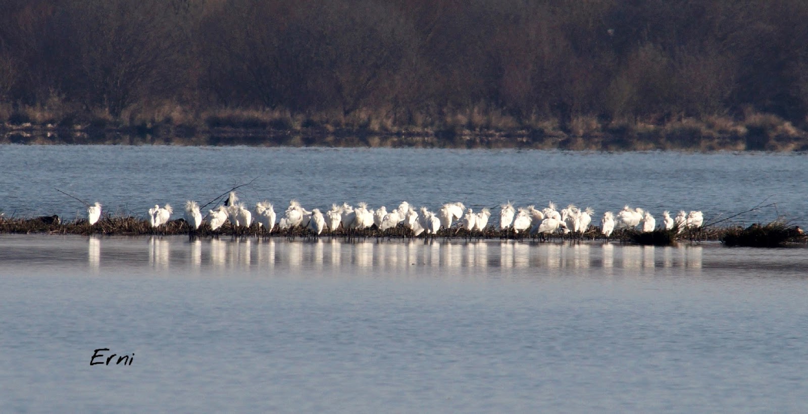 Una solitaria garceta grande y un buen bando de espátulas teñían de blanco el lago de Orx.