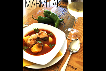 Este es un plato muy distintivo de la cocina vasca, aunque con pequeñas variaciones de nombre e ingredientes se encuentra en Cantabria (Sorropotún) o en Francia (marmite). Marmitako quiere decir en euskera literalmente “de la marmita”, una olla metálica con su respectiva tapa, en la cual los pescadores “arrantzales” preparaban sus alimentos mar adentro, este plato en particular, es un guiso de trozos de pescado (en un principio eran trozos de los pescados que se disponían a bordo) hoy en día se usa atún blanco o bonito, acompañado de patatas, cebollas, pimientos y tomates normalmente, un toque picante nunca están demás, plato de cuchara y de pescado, ideal para días de frío o “para resucitar muertos”, sencillo, como muchos de los platos tradicionales, con ingredientes básicos y de fácil acceso, se puede hacer casi en cualquier parte del mundo por su simplicidad de productos, ¿A qué esperas?