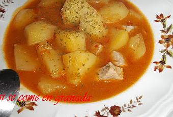 - Se cubre todo con el caldo de pescado y se deja cocer hasta que este cocida la patata.