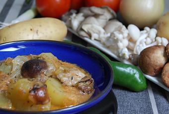 Hoy, sin embargo, le vamos a dar una vuelta de tuerca a la receta clásica y vamos a convertir este guiso marinero en un guiso de tierra porque en lugar de cocinarlo con bonito lo vamos a hacer con hongos. El resultado es un plato muy fino y exquisito. La idea no es mía, yo lo aprendí con el chef Aingeru Etxebarria, pero lo he hecho mío y ahora está en mi recetario como un plato demandado que sé que triunfa.