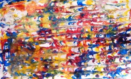 El agua que se utilizó en la publicación anterior es reemplazada por la crema de afeitar.2.- Salpicar la pintura ( témpera aguada ) con un pincel o poner directamente con los frascos, sobre la crema de afeitar.