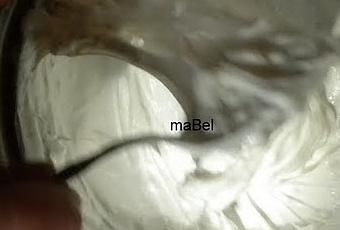 lo sacamos y mezclamos y mezclamos fuera del bañomaria, se nos forman como unos hilos. Si vemos que falta un poco por desintegrarse, volvemos al bañomaria, siempre revolviendo. Hasta que quede una crema suave y densa.