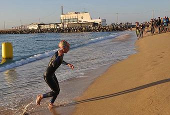 La primera salida era a las 8.10h de la mañana del domingo 8 de octubre en la playa de la Mar Bella y salíamos juntos tanto chicos como chicas élite. Una singularidad de esta prueba es que ambos sexos pueden hacer drafting o “ir a rueda” unos de otros en el segmento ciclista y eso lo hace más emocionante ya que se puede jugar con otra estrategia.
