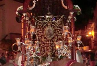 Tras el sermón, se vuelve a procesionar acompañado de las Hermandades Filiales y por banda de música, hasta la cruz de la Ermita. Cuando cae tarde se despiden las hermandades y regresa al porche de la Ermita sobre las diez de la noche. Una vez allí se realiza la tradicional puja de bancos para la entrada del Santo Patrón en su Santuario.