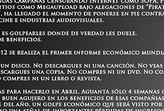 Acaba de enviarme esto alguien que lo ha visto en Tuenti: dos páginas al respecto, que suman ahora mismo más de cinco mil seguidores. Lo he visto también en páginas y eventos en Facebook en españoly en inglés, en esta página web, en Forocoches, en Reddit, y en algunos vídeos en YouTube. No es mal momento para recordar que Megaupload tenía más de ciento ochenta millones de usuarios en todo el mundo.Es lo que tiene invocar a los demonios…