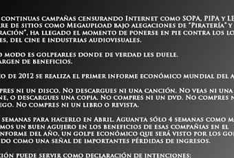 Despues de leer esto, lo primero que me ha venido a la mente es que ademas de las grandes compañias de la industria del entretenimiento, tambien las pequeñas y las medianas empresas podrian verse afectadas (cines, tiendas de musica o videojuegos...), y teniendo en cuenta como esta la economia ultimamente, esto no es ninguna tonteria. Despues he pensado que esta protesta durara solamente un mes, y dudo mucho que las perdidas de un mes hagan que nadie pierda su trabajo o que una pequeña empresa cierre.
