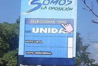 Tan bajo llega esta gente que apoyan la candidatura de una de las mayores perversiones políticas en la dictadura chavista: El campeón mundial de salta talanqueras, el eterno derrotado del municipio Sucre de Caracas. Manipulan alegando que son opositores además de destacar la palabra Unidad, esto y ubicarse junto a la tarjeta de la MUD son las principales demostraciones del desespero por disminuir y reducir a la MUD ante el peor momento del partido de la dictadura y sus secuaces.