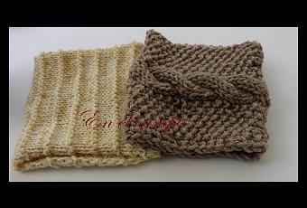 Y el segundo, con lana beig y blanca tejidas juntas, en punto liso con "rayas" a punto bobo.