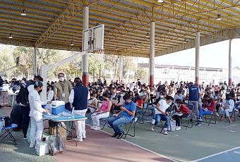 Texcoco, Estado de México.- Más de 13 mil 500 jóvenes de 15 a 17 años sin morbilidad, recibieron su primera dosis de vacunación, en el Deportivo Silverio Pérez de Texcoco, con una amplia participación tanto de padres de familia y tutores como de adolescentes inoculados.